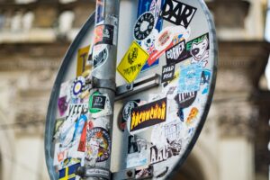 Straßenschilder, Verkehrsschilder und Hinweissysteme sind häufig Ziel von Graffiti und Aufklebern. Verschmutzte Beschilderung kann die Lesbarkeit beeinträchtigen und erfordert regelmäßige Reinigung.
